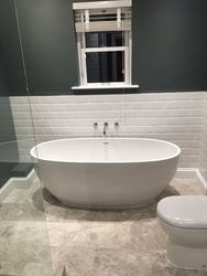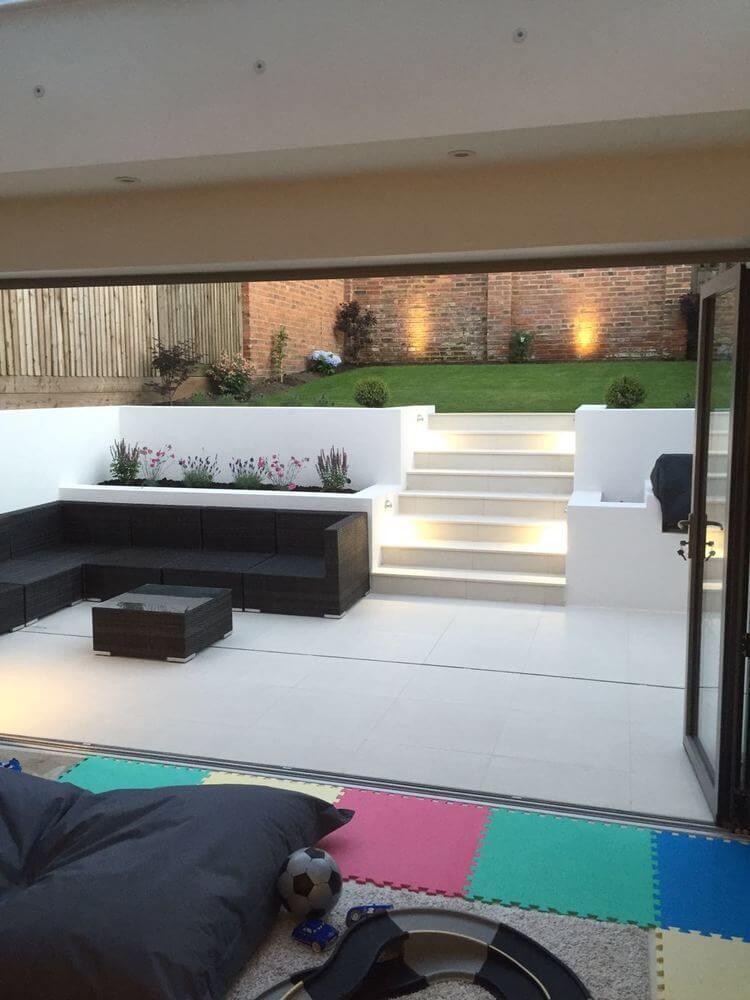 This build was a complete refurbishment with a two-story rear extension. A spacious patio with retractable awning was also added, to give a comfortable space outside as well as in. The extension section also has sliding patio doors, for ease of access into the garden. The inside was treated with the same love and care. A new bathroom, kitchen, bedrooms and more can also be seen in the photos below.