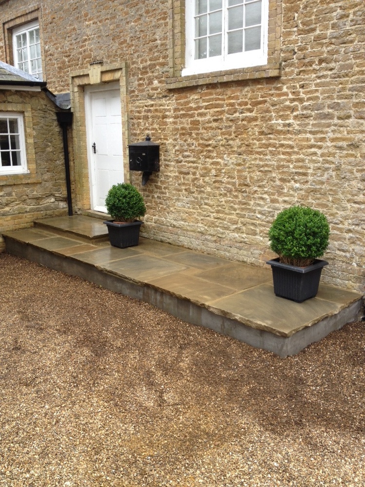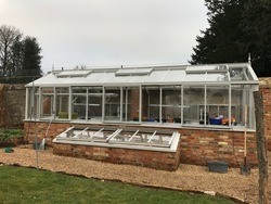 In this project, we built a greenhouse's base walls. Support buttresses were also built alongside some of the original garden walls to give them strength. A York stone step was also added to the house, in keeping with the style of the house.