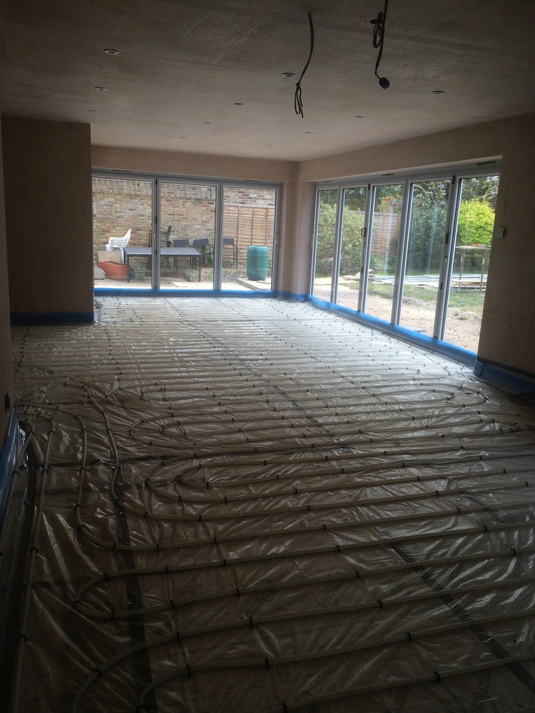 This project was a complete refurbishment along with a two storey side extension and single-storey rear extension. Underfloor heating was also installed.
